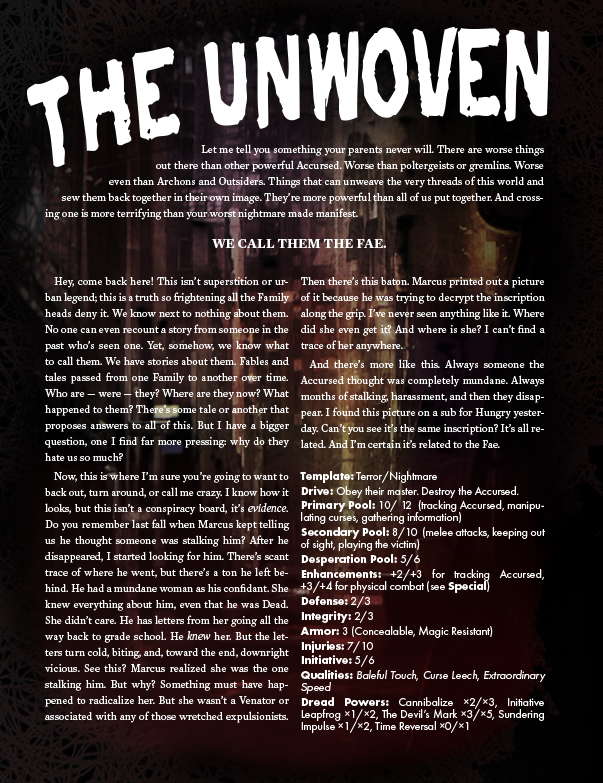 This week on the Onyx Path News, Matthew discusses the Unwoven from Curseborne: https://youtu.be/ZYbcTPKjakI?si=HTpMHbB04eTVpaIX